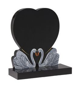 Dense Black Granite HS 30″ x 26″ x 3″ Base 3″ x 30″ x 12″ Two swans together throughout life decorate this memoral.