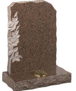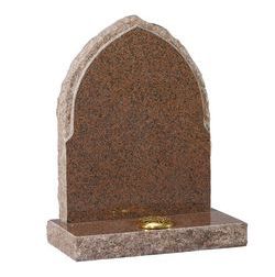 Balmoral Red Granite HS 27″ x 21″ x 3″ Base 3″ x 24″ x 12″ A gothic shaped headstone with natural rustic edges and rebate.