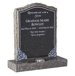 Celtic Grey Granite HS 27″ x 21″ x 5/3″ Base 4″ x 24″ x 12″ A traditional Boulder style memorial.