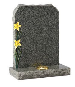 Jade Green Granite HS 27″ x 21″ x 3″ Base 3″ x 24″ x 12″ Coloured highlights emphasise these spring daffodils.