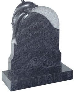 Bahama Blue Granite HS 32″ x 25″ x 5″ Base 4″ x 30″ x 12″ Two hand carved dolphins and a wave.