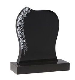 Dense Black Granite HS 30″ x 24″ x 4″ Base 4″ x 30″ x 12″ The densest black granite provides a high contrast to the delicate white highlighting on the hand carved roses.