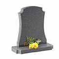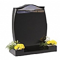 A bronze ornament adds symbolism to this light grey granite Shaped and chamfered base to match top of headstone.